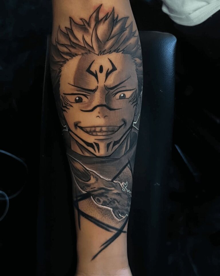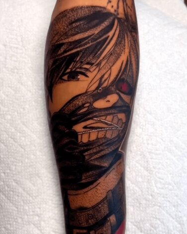 Sebastian creates highly detailed black-and-grey anime tattoos, often adding subtle pops of color. His attention to shading gives each piece a striking, dynamic look.