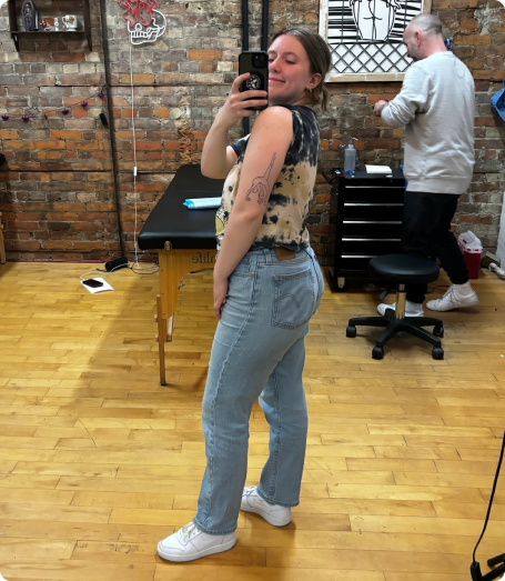 When she saw the Yoga Kitten, she knew this was the design for her. It was finally time to book the session and get the tattoo she had been wanting. The simple process on CO:CREATE gave her the confidence to book it immediately and commit to the decision.