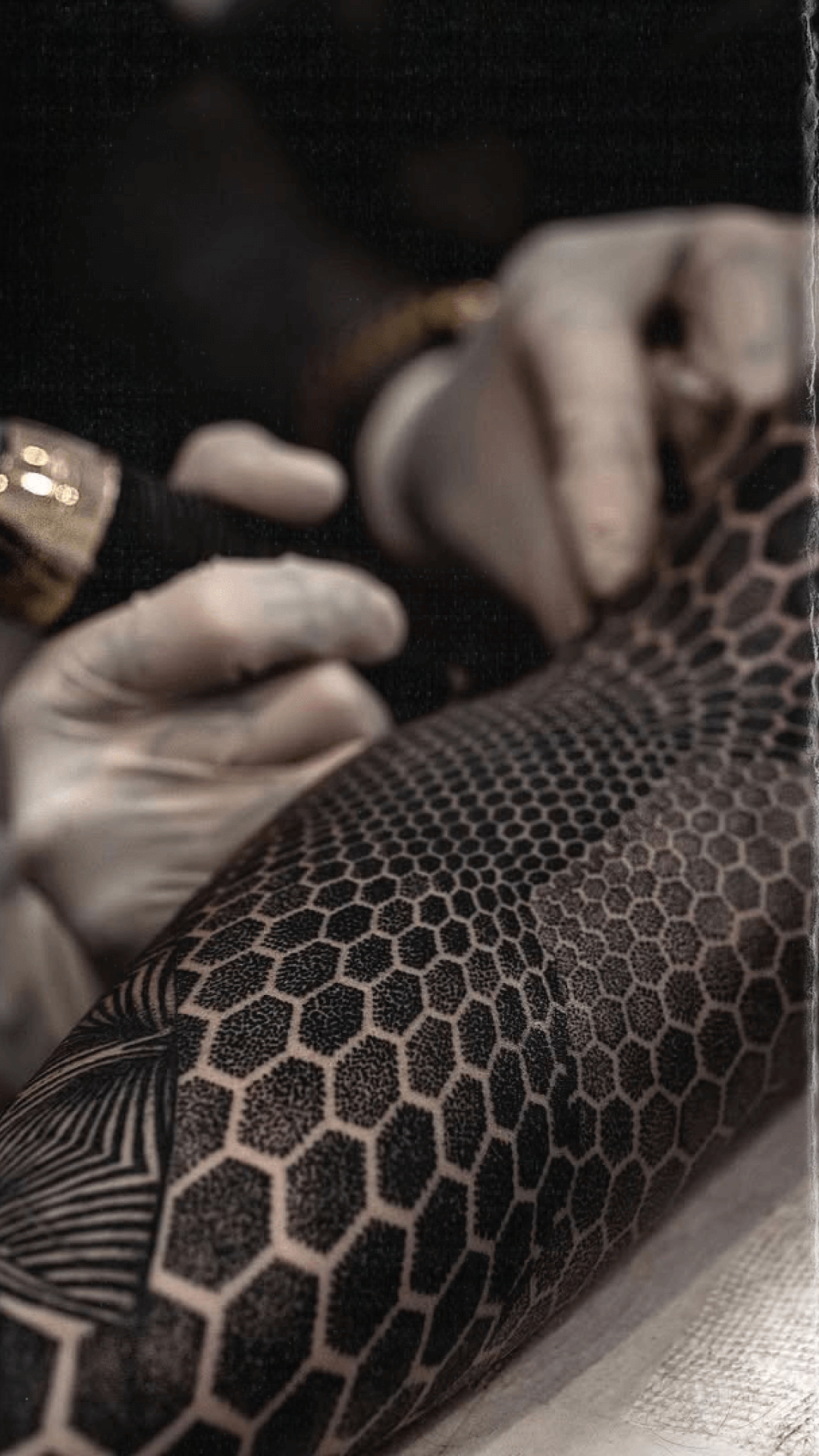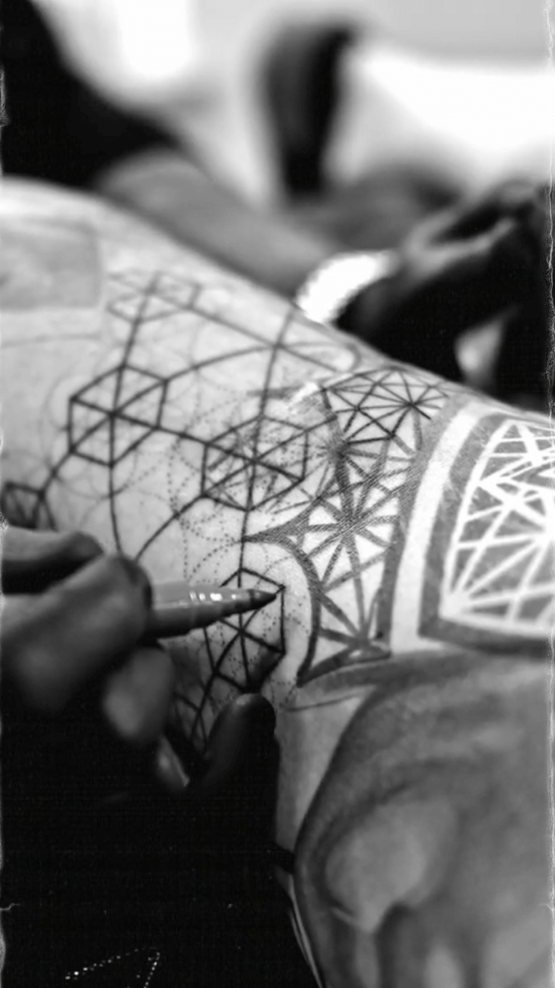 A lifelong fascination with nature, mathematics, and ancient symbols shapes his work. What began as personal inspiration has evolved into a distinct style that blends geometry with meaning, resulting in tattoos that are both technically precise and spiritually resonant.