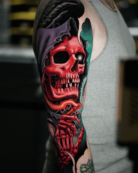 For me, it’s all about connecting with the client and the subject matter. I'm open to taking the art in different directions if it feels right for both of us. While I love horror, dark art, and comics, I also enjoy creating bold, colorful tattoos with strong contrasts that will hold up over time.