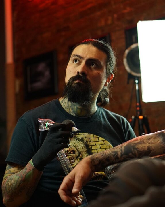 In the heart of New York City, Ruben Barahona is making his mark as a tattoo artist with a passion for dark themes, realism, and a love for horror and heavy metal. Originally from Guatemala, Ruben’s journey led him to New York eight years ago, where he found inspiration in the city’s vibrant energy and its constant push for artistic growth. Ruben’s work is deeply personal, influenced by classic horror, iconic album art, and renowned artists across various mediums.