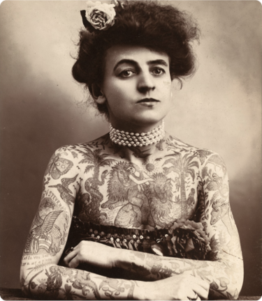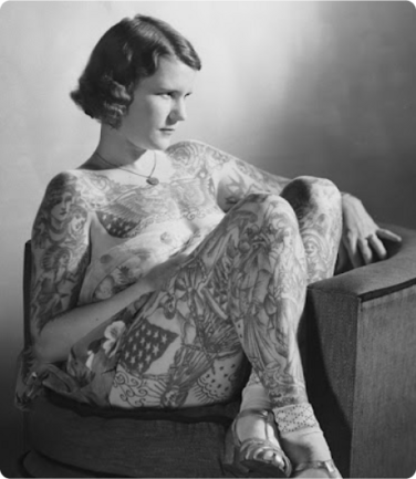 Betty Broadbent, who apart from performing in the circus, worked as a tattoo artist, traveling across countries like Montreal, San Francisco, and New York. She was the first inductee into the Tattoo Hall of fame in 1981. She is regarded as the most photographed tattooed lady of the 20th century.