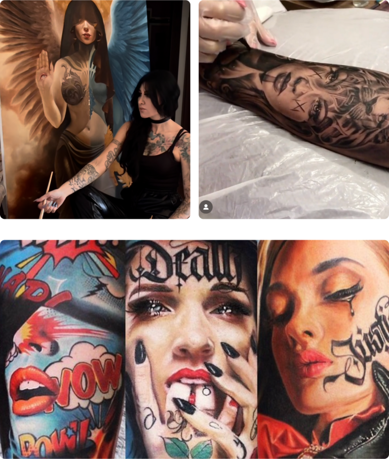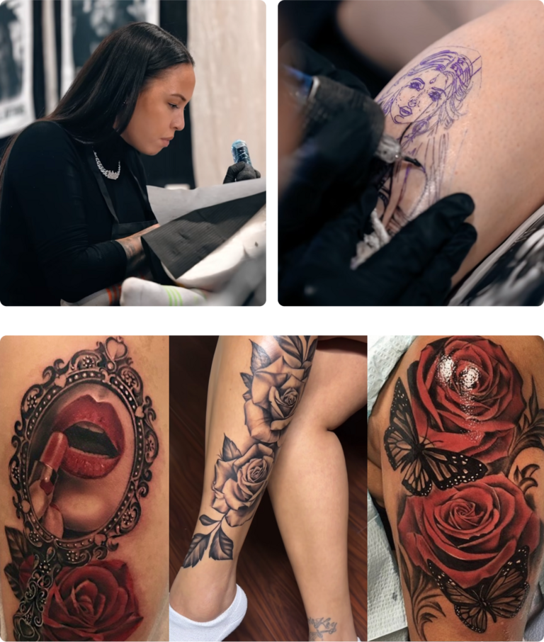 So for me, I just know, again, like leaving a big university, my dad and my mom, like them being business people and everybody just looking like I'm just quitting school to do this this hustle. When they thought of tattoos, it was like hole-in-the-wall shops or just struggling. Even the front end of some of the tattoo shows that you've seen, it's like they want to document the struggle and everything. I am excited that so many tattoo artists that I know have made it. They're making big income off of what was once looked at is so minor and so just like kind of like, you know, like, you know what I mean? Like kind of rolling their eyes at it. And now it's like people are affording themselves the lifestyle that a lot of careers, you know, would never be able to afford. It's like you can really live out a dream and take it. You can take it. It's like there's no ceiling on where you can take tattooing. So that is what I'm most excited for. in this industry. It's just like, no, you can really, really make it. And I try to tell people too, like, you know, girls who are starting off and, you know, who are, who are struggling with it or who, you know, are not motivated, they lack the motivation. And it's just like, look, you can really, really like make a great living, you know, off of this, if you take it seriously and if you really focus on getting good. So I think that's what I'm, I'm most excited about just the, how there's no limit to it. And you see a lot of tattoo artists are no longer just, tattoo artists anymore. Like they're business people. And that is just what inspires me most, what people are now doing with it.